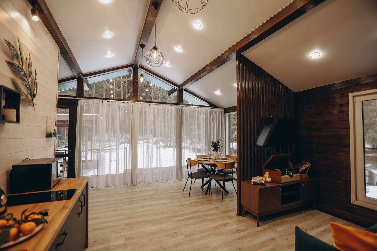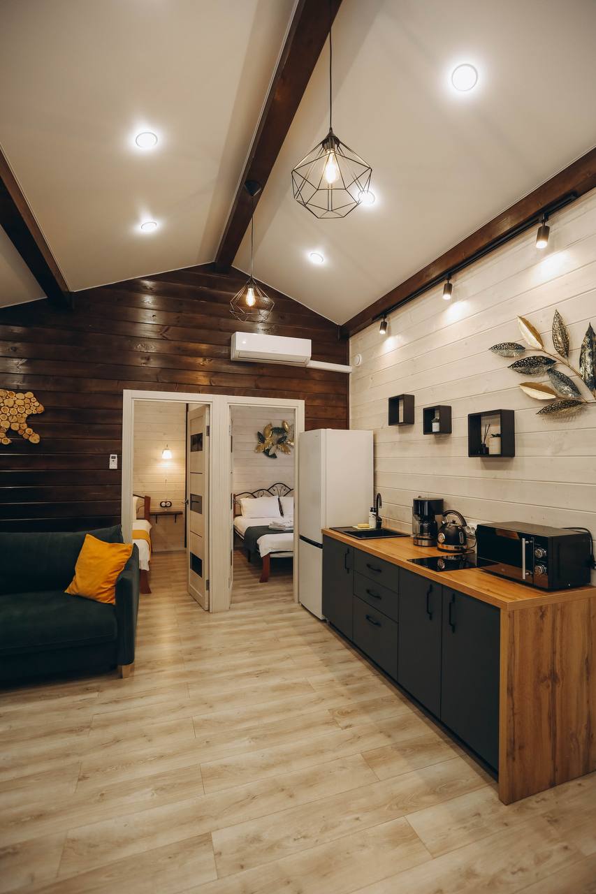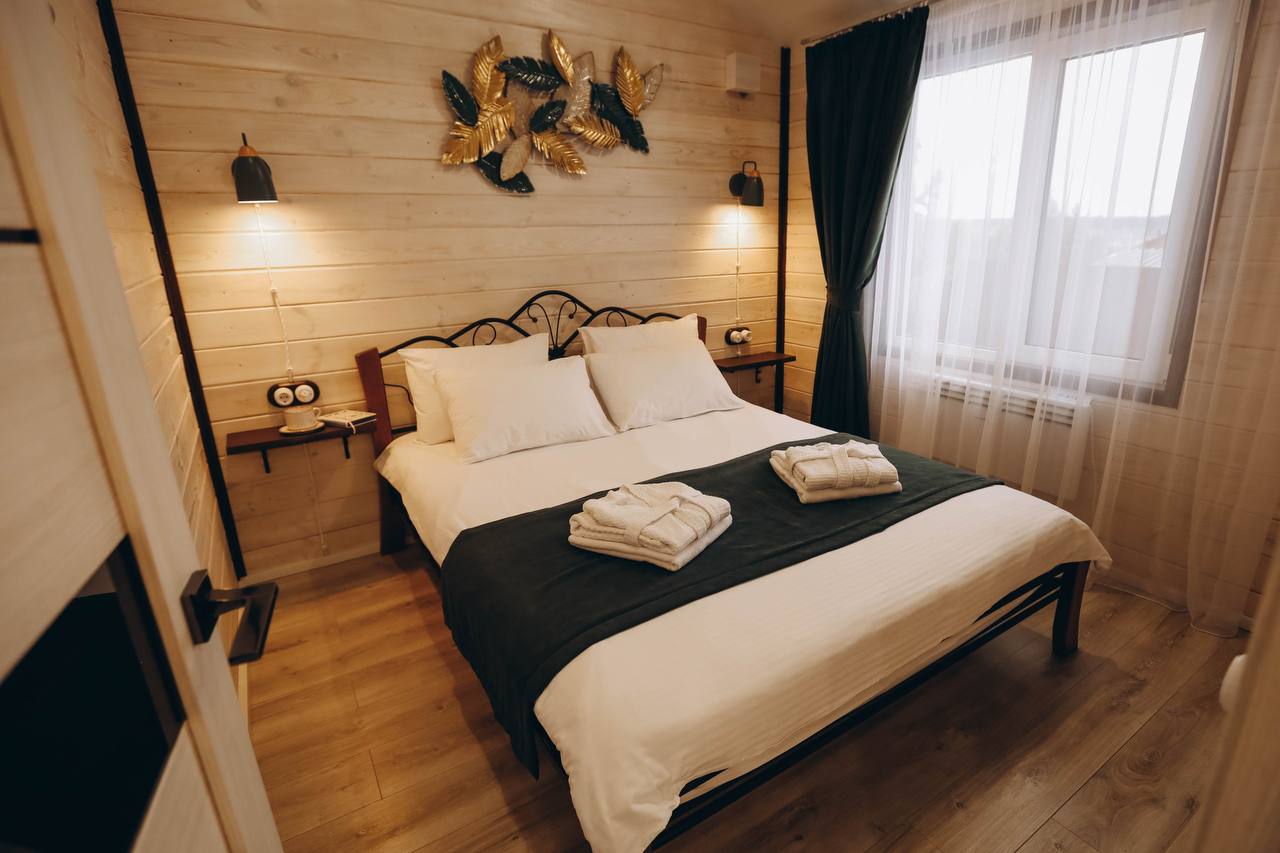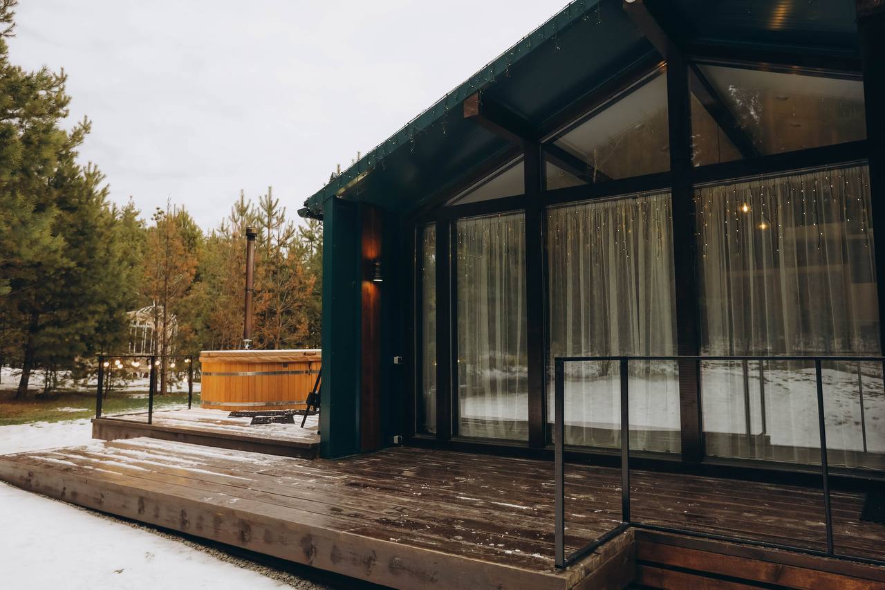 Добро пожаловать в «Лесной Барн» – ваш уютный уголок на природе! Просторный дом, утопающий в зелени леса, с панорамным видом и террасой для отдыха, создан для вашего комфорта и расслабления. Уникальный стиль и комфорт: «Лесной Барн» выполнен в дизайнерском стиле с экологичными материалами. • Две спальни с ортопедическими матрасами и постельным бельём премиального качества. • Ванная комната: мягкие халаты, полотенца и средства личной гигиены. Пространство для отдыха: • Уютная гостиная с диваном и большим телевизором. • Полностью оборудованная кухня с обеденной зоной. • Терраса для утреннего кофе или вечерних посиделок под звёздами. • На участке: мангальная зона и горячая купель фурако. • Для детей: батут для весёлого времяпровождения. Оснащение дома: Мы предусмотрели всё для вашего удобства: • Спальные места: две двуспальные кровати с ортопедическими матрасами и диван. • Техника: холодильник, кондиционер, индукционная плита, микроволновка, электрочайник, кофеварка. • Посуда: столовые приборы, бокалы, кастрюля, сковорода. • Дополнительно: фен, утюжок для волос, халаты, полотенца, средства личной гигиены, чай, кофе, сахар, соль. • Для гриля: мангал, шампуры, решётки, угли (3 кг) на заезд, розжиг. • Парковка на закрытой территории. Дополнительные услуги: • Фурако — 6000 ₽/топка. • Фотосессия — 5000 ₽/час. Условия бронирования и проживания: • Предоплата: 50% при бронировании, оставшаяся сумма в день заселения. • Депозит: 5000 ₽ (возвращается через 3 часа после уборки при соблюдении правил проживания). • Отмена бронирования: ◦ За 7 дней до заезда — полный возврат. ◦ За 3 дня — удерживается 50%. ◦ Менее чем за 3 дня — предоплата не возвращается. • Заезд: с 15:00, выезд: до 12:00. • Важно: размещение с животными не предусмотрено. • Режим тишины: с 21:00 до 10:00. Забронируйте «Лесной Барн» уже сегодня! Подарите себе отдых премиального уровня в окружении природы. Ваш комфорт и незабываемые эмоции — наша главная задача!