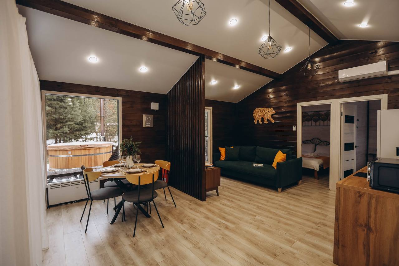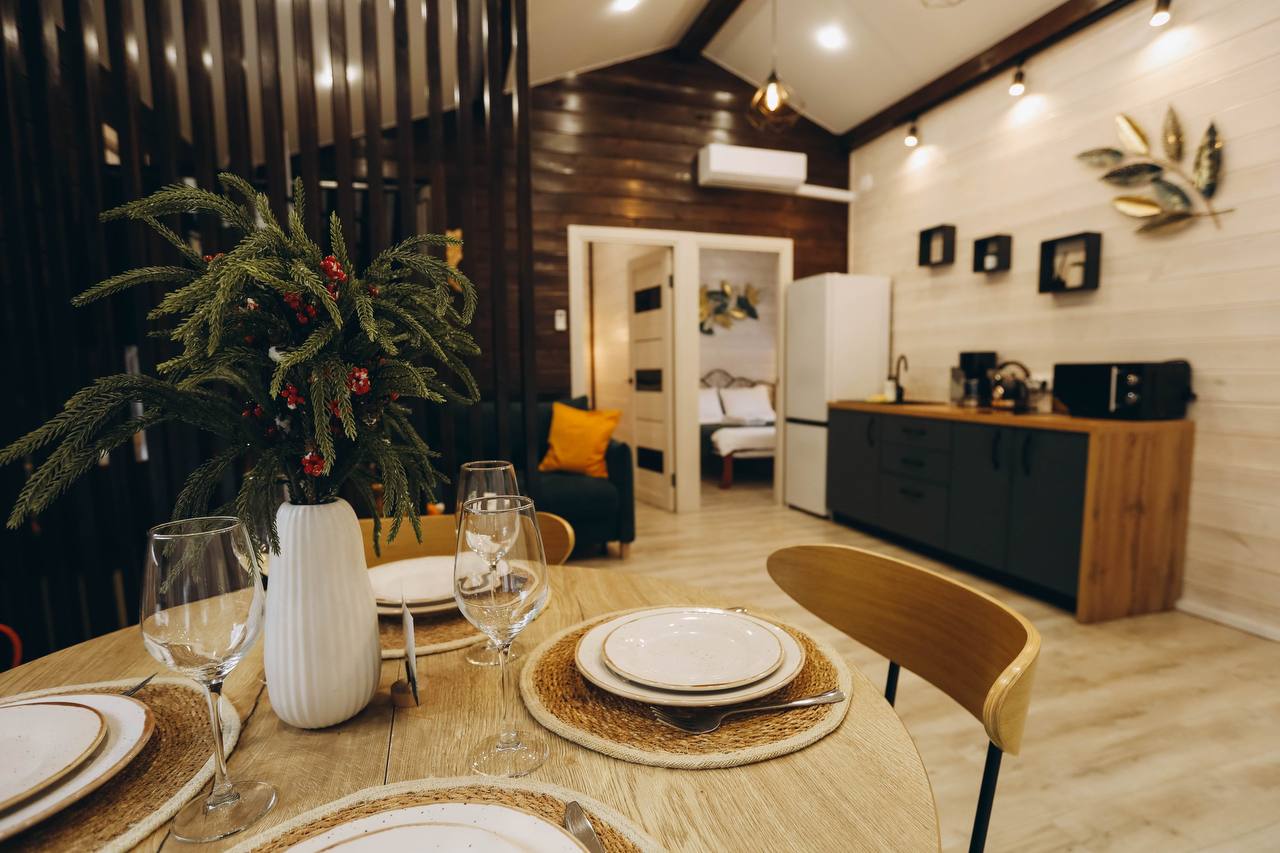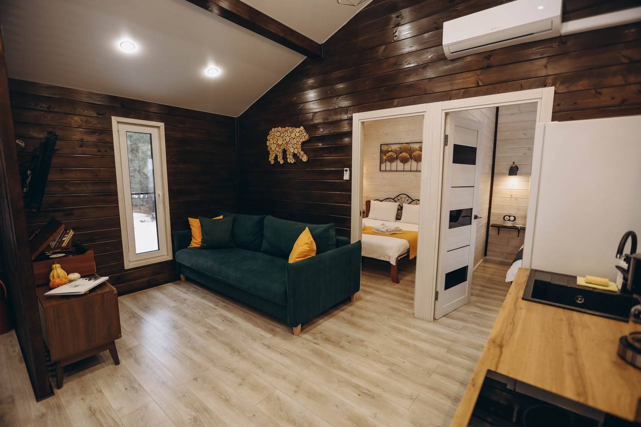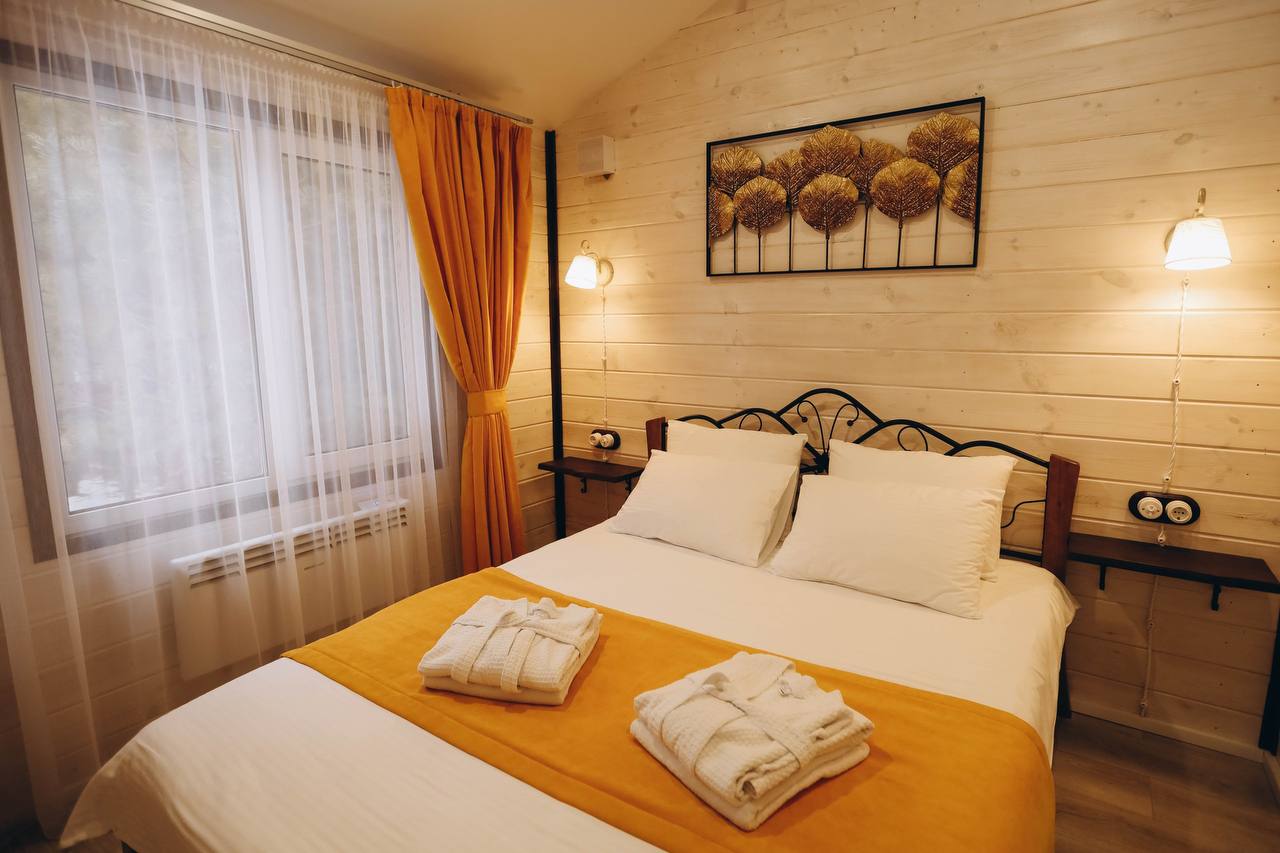Добро пожаловать в «Лесной Барн» – ваш уютный уголок на природе! Просторный дом, утопающий в зелени леса, с панорамным видом и террасой для отдыха, создан для вашего комфорта и расслабления. Уникальный стиль и комфорт: «Лесной Барн» выполнен в дизайнерском стиле с экологичными материалами. • Две спальни с ортопедическими матрасами и постельным бельём премиального качества. • Ванная комната: мягкие халаты, полотенца и средства личной гигиены. Пространство для отдыха: • Уютная гостиная с диваном и большим телевизором. • Полностью оборудованная кухня с обеденной зоной. • Терраса для утреннего кофе или вечерних посиделок под звёздами. • На участке: мангальная зона и горячая купель фурако. • Для детей: батут для весёлого времяпровождения. Оснащение дома: Мы предусмотрели всё для вашего удобства: • Спальные места: две двуспальные кровати с ортопедическими матрасами и диван. • Техника: холодильник, кондиционер, индукционная плита, микроволновка, электрочайник, кофеварка. • Посуда: столовые приборы, бокалы, кастрюля, сковорода. • Дополнительно: фен, утюжок для волос, халаты, полотенца, средства личной гигиены, чай, кофе, сахар, соль. • Для гриля: мангал, шампуры, решётки, угли (3 кг) на заезд, розжиг. • Парковка на закрытой территории. Дополнительные услуги: • Фурако — 6000 ₽/топка. • Фотосессия — 5000 ₽/час. Условия бронирования и проживания: • Предоплата: 50% при бронировании, оставшаяся сумма в день заселения. • Депозит: 5000 ₽ (возвращается через 3 часа после уборки при соблюдении правил проживания). • Отмена бронирования: ◦ За 7 дней до заезда — полный возврат. ◦ За 3 дня — удерживается 50%. ◦ Менее чем за 3 дня — предоплата не возвращается. • Заезд: с 15:00, выезд: до 12:00. • Важно: размещение с животными не предусмотрено. • Режим тишины: с 21:00 до 10:00. Забронируйте «Лесной Барн» уже сегодня! Подарите себе отдых премиального уровня в окружении природы. Ваш комфорт и незабываемые эмоции — наша главная задача!