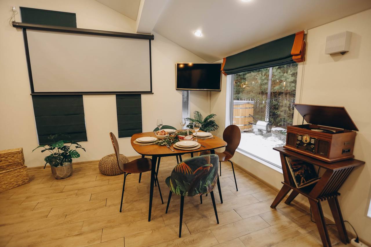 Добро пожаловать в «Уютный Барн» – место, где стиль и комфорт создают идеальное пространство для отдыха! Этот дизайнерский дом с яркими акцентами идеально подходит для семейного уикенда, романтического отдыха или встречи с друзьями. Атмосфера уюта, современное оснащение и природа вокруг подарят незабываемые впечатления Дизайн и комфорт: Просторный дом оформлен в уникальной концепции с яркими элементами декора. Ретро-радиола с виниловыми пластинками создают особую атмосферу. Фильмы на проекторе запомнятся на долго Все для вашего удобства: Две спальни с ортопедическими матрасами и постельным бельём отельного уровня подарят комфортный сон. Ванная комната оснащена всем необходимым для уюта. Вдохновляющий отдых: Смотрите фильмы или мультфильмы на большом экране с проектором, наслаждайтесь тишиной или проведите вечер у мангала. Релакс на природе: Горячее фурако под звёздным небом и беседка с мангальной зоной сделают ваш отдых по-настоящему особенным.Оснащение дома: • Две двуспальные кровати с ортопедическими матрасами. • Ретро-радиола с пластинками, проектор (по запросу). • Полностью оборудованная кухня: индукционная плита, микроволновая печь, электрочайник, кофеварка, холодильник, полный набор посуды и бокалов. • Для уюта: фен, утюжок, средства гигиены. • На участке: мангальная зона, уголь (3кг на заезд), терраса с видом на лес, парковка. Услуги за дополнительную плату: • Фурако – 6000₽/топка. • Фотосессия – 5000₽/час. • Аренда проектора – 500₽/сутки. Условия бронирования и проживания: • Предоплата: 50% при бронировании, оставшаяся сумма в день заселения. • Депозит: 5000 ₽ (возвращается через 3 часа после уборки при соблюдении правил проживания). • Отмена бронирования: ◦ За 7 дней до заезда — полный возврат. ◦ За 3 дня — удерживается 50%. ◦ Менее чем за 3 дня — предоплата не возвращается. • Заезд: с 15:00, выезд: до 12:00. • Важно: размещение с животными не предусмотрено. • Режим тишины: с 21:00 до 10:00. Подарите себе отдых на природе с комфортом!